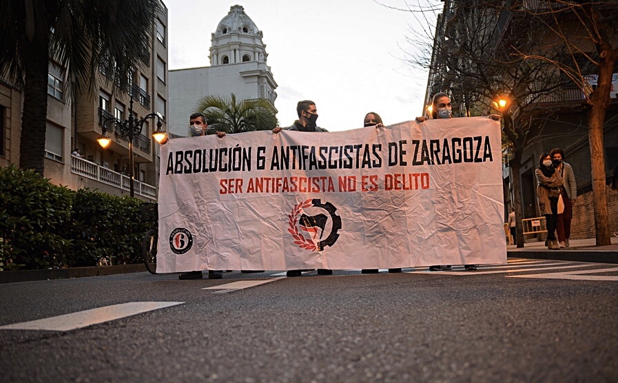 Todo empezó el 17 de enero de 2019 cuando el movimiento antifascista de Zaragoza convocó a manifestarse frente a un mitin de Vox, en el marco de la campaña electoral de las autonómicas, con Santiago Abascal y sus pesos pesados. Desde entonces seis jóvenes zaragozanos, que fueron detenidos en otro momento y lugar de la manifestación, están viviendo un infierno. Han podido confirmar en sus carnes que no importa lo que pasó realmente, sino que es la policía la que escribe un relato, que el juez utiliza sin que haya prueba alguna, para que sirva de “escarmiento” y para conseguir que “el resto no se mueva”.