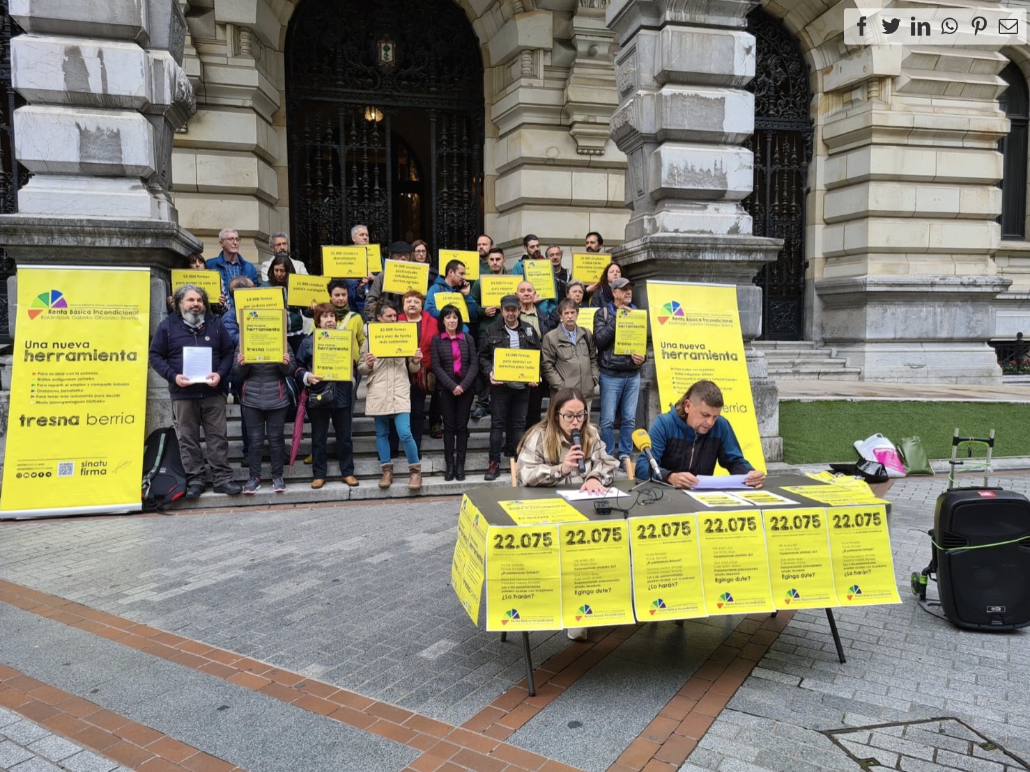 “Seguimos apostando por que la ciudadanía sea la protagonista, el camino hasta aquí ha sido un proceso popular y queremos que lo siga siendo”, dijeron. Hoy, tras la rueda prensa, realizaron una Kalejira por las calles de Bilbao y Donostia y “desde mañana día 4 de mayo hasta que se cierre el debate en el Pleno el día 5, instalaremos una carpa frente al Parlamento Vasco bajo el lema ‘Es la hora de la Renta Básica Incondicional’ que -como adelantó Josu Balmaseda en una de las dos entrevistas mantenidas con Sare Antifaxista-, “supondría la asignación de un importe mínimo de 900 euros mensuales para una persona adulta y se garantizaría que, anualmente se incremente con arreglo al IPC registrado en la Comunidad Autonómica Vasca, siempre que este sea mayor que cero”.