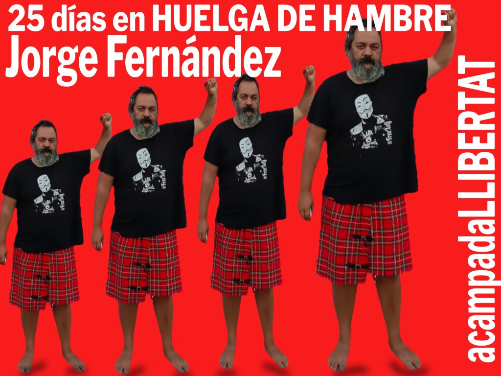 Hablamos con Jorge Fernández, con la iniciativa Acampada Llibertat, cumple hoy 1 de julio 25 días en huelga de hambre en la Plaza de la Villa en la población de Santa Perpetua, a veinte minutos de Barcelona. Comenzó con 110,8 kilogramos de peso y la huelga de hambre le ha bajado hasta los 99,8 kilogramos, por el momento. Demanda la libertad de prensa y la libertad de los periodistas Pablo González y Julian Assange, pero también su protesta es un grito por la mejora de condiciones sociales para las personas necesitadas, para ello cree que el comedor social en esa población, “gobernada por la izquierda”, es “inaccesible para muchas personas necesitadas, porque es elitista”.