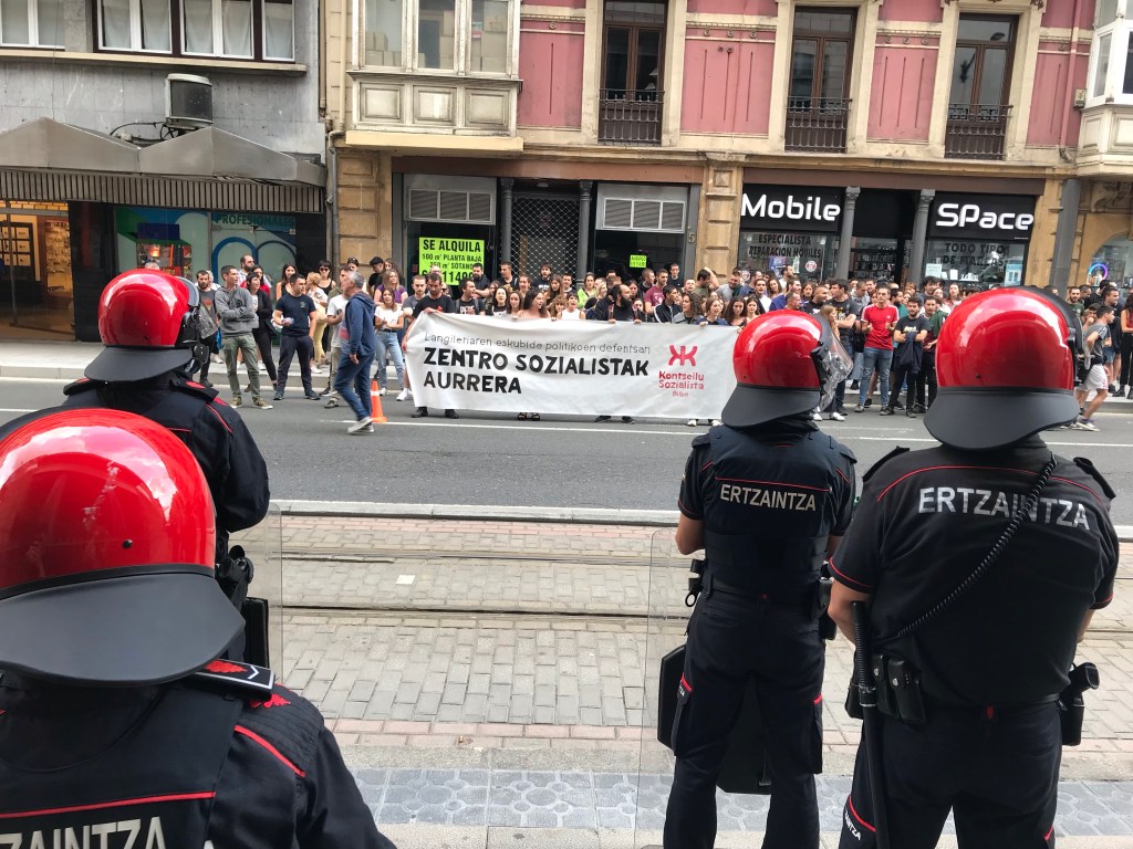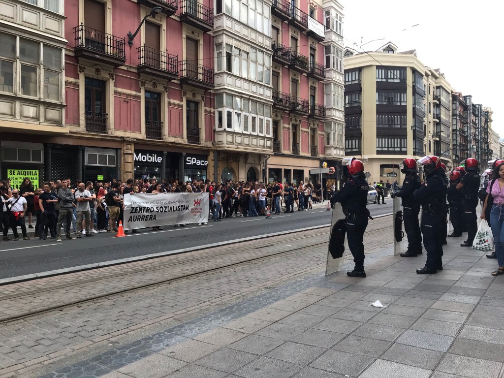 Una concentración numerosa ante los juzgados de Bilbo de la calle Buenos Aires ha mostrado el rechazo del Movimiento Socialista (GKS y Kontseilu Sozialista Bilbo) al desalojo del Zentro Sozialista Urkila en Errekalde esta mañana por parte de la Erzaintza, al servicio de la burguesía vasca y de quienes les amparan. El local, propiedad de BBK (Kutxabank), llevaba siete años inutilizado, “vacío”, según dijeron al terminar la concentración, y hace cuatro meses el Consejo Socialista de Bilbo (Kontseilu Sozialista) lo puso en marcha con “una actividad social y política diaria”.