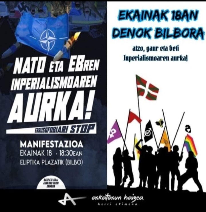 Sería algo osado por nuestra parte hacer un análisis de este tipo, pero consideramos que vienen tiempos difíciles para la clase trabajadora europea. Ezkerraldea Antifascista utiliza un lema que define perfectamente la situación ante la que nos encontramos, “La OTAN y la Union Europea nos condenan a la guerra y a la miseria”. Estados Unidos a través de su brazo armado la OTAN y utilizando como campo de batalla Europa está provocando una guerra en Ucrania, con el objetivo de desestabilizar a Rusia, acceder a sus recursos naturales. El modelo imperialista de los Estados Unidos está en crisis y su forma de reactivarse es a través de la creación de conflictos o debilitar al polo emergente integrado por países no sometidos a Estados Unidos: Rusia, China, India, Venezuela, Cuba…..Esta situación geopolítica nos está afectando de manera brutal a la clase trabajadora y creemos que en los próximos meses se agravará.
