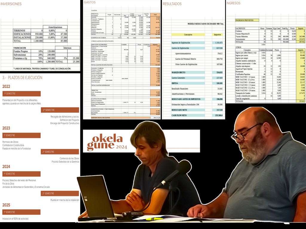 Iñaki Urkixo, de SOS Baserriak, y Jose Antonio Gorbea presentaron la iniciativa privada y financiada una quinta parte con dinero público. Okelagune anticipa una facturación anual de 1,19 millones, lo que -según el proyecto- generaría un beneficio de 157.518 euros, «tomando como referencia el 80% de la media de los tres últimos años del matadero municipal (público)».