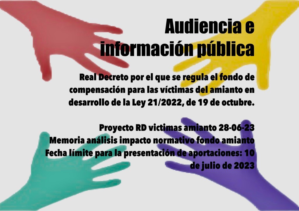 La Federación Estatal de Asociaciones de Víctimas del Amianto, CCOO y UGT han presentado un documento conjunto de alegaciones al proyecto de Real Decreto que regula el fondo de compensación para las víctimas del amianto en desarrollo de la Ley 21/2022 que el Ministerio de Inclusión, Seguridad Social y Migraciones ha sometido a consulta pública, porque entienden que “las indemnizaciones del Fondo de compensación para las víctimas del amianto propuestas por el Gobierno son absolutamente insuficientes”. Ponen como ejemplo los acuerdos alcanzados con empresas como Uninaval de Valencia o Metro Madrid, que fijan indemnizaciones cuatro veces mayores que las propuestas por el equipo de José Luis Escrivá.