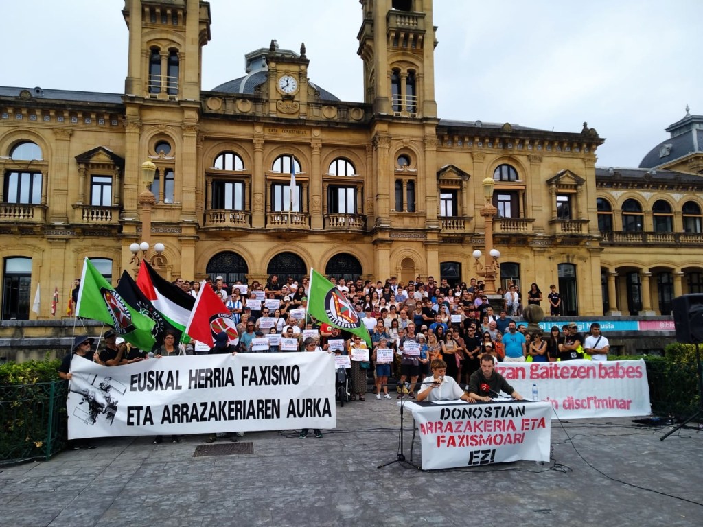 Hoy antifascistas luchan en las calles en Inglaterra, Escocia, Irlanda, Ucrania y otros lugares contra el fascismo, también en Donostia. 35 colectivos sociales, juveniles, políticos y antifascistas han denunciado en rueda de prensa en la capital de Gipuzkoa la intensificación de la violencia de grupos nazis y fascistas “contra las personas racializadas, y sobre todo contra quienes están en situación de exclusión, “que es más cruda y sistemática que nunca y, con ella, se está generalizando la criminalización contra este colectivo”. Pone de manifiesto, a su juicio, “una política de limpieza” en la ciudad, que no aceptan. Quienes han alzado su voz son: Ernai, Intziri, Bilgune Feminista, Donostiako Piratak, Donostialdeko Ehgam. Bizilagunekin plataforma, Saretxe, Kaxilda, Piztu, ErratikoCamino, Amara Berriko Ilunki Elkartea, Infernua Bizirik, DonostiakoTransmaribollo asanblada, Donostia Palestina, Egia Bizirik, Sare Antifaxista, Euskal Herriko Kontseilu Sozialista, Itaia, GKS, Ikasle Abertzaleak Txantxarreka gaztetxea, Txago, Kaleko afari solidarioak, Hiritarron Harrera sarea, Basajaun elkartea, Guztiontzako Egia Auzotar Sarea, Sarroeta Auzo Elkartea (Martutene), Martutene Bizirik, Birunda, Ongietorri Errefuxiatuak, Komite internazionalistak, ESK sindikatua, Letaman gaztetxea, Donostiako Askapena y Aske.