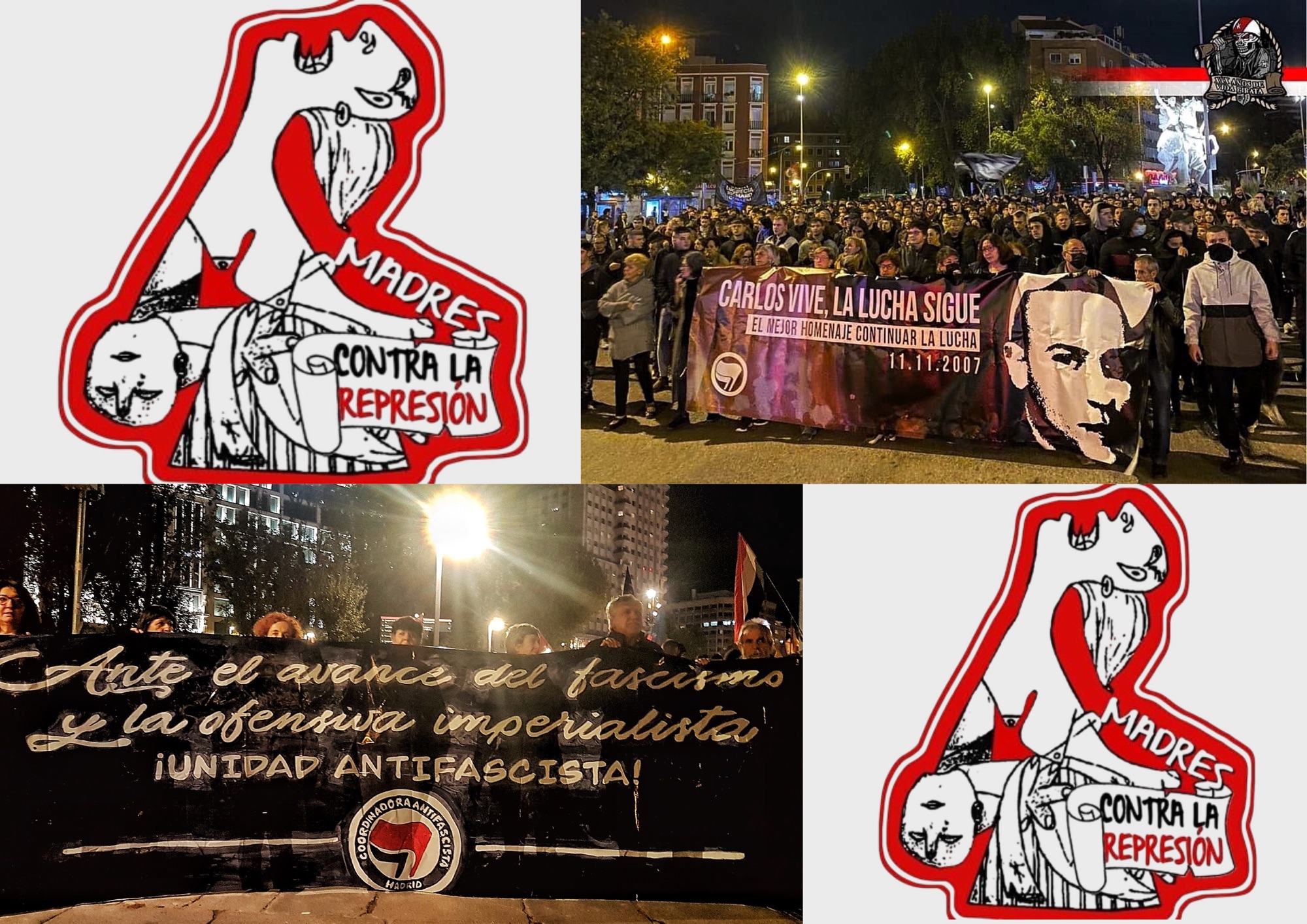 Llevan más de una década en la lucha y en la solidaridad desde su nacimiento a raíz del asesinato fascista de Carlos Palomino. Comenzaron como apoyo a sus hijos, “que son los que sufren represión”, porque reclaman una sociedad más justa para todos. Reconocen que esa juventud luchadora “es la mejor” y llaman, no sólo a resistir, sino “a seguir en la lucha, seguir combatiendo en la calle a los fascistas” que, por desgracia, están atrayendo “con sus discursos simplistas a muchos jóvenes”. Para Madres contra la Represión esa terrible realidad es “nuestra gran preocupación”. Critican que no se deroguen las leyes que permiten la represión arbitraria, como la ley mordaza, que con la anunciada reforma “lo sustancial va a quedar ahí, y la represión va a quedar ahí”. Porque a su juicio, los gobernantes tienen una connivencia con la élite económica ya que “sus patas fundamentales son: el sistema capitalista, por un lado, y en particular, el régimen del 78, por otro”, añaden.
