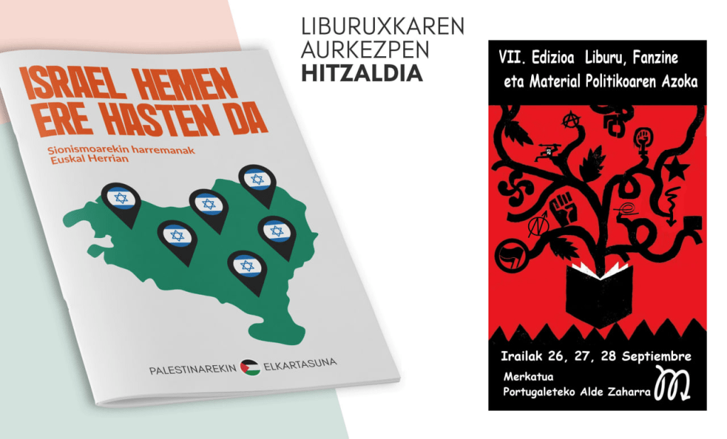 Sionismoak Euskal Herrian dituen harremanez osatu dugun liburuxka aurkeztuko dugu datozen egunetan Hego Euskal Herriko hiriburuetan.